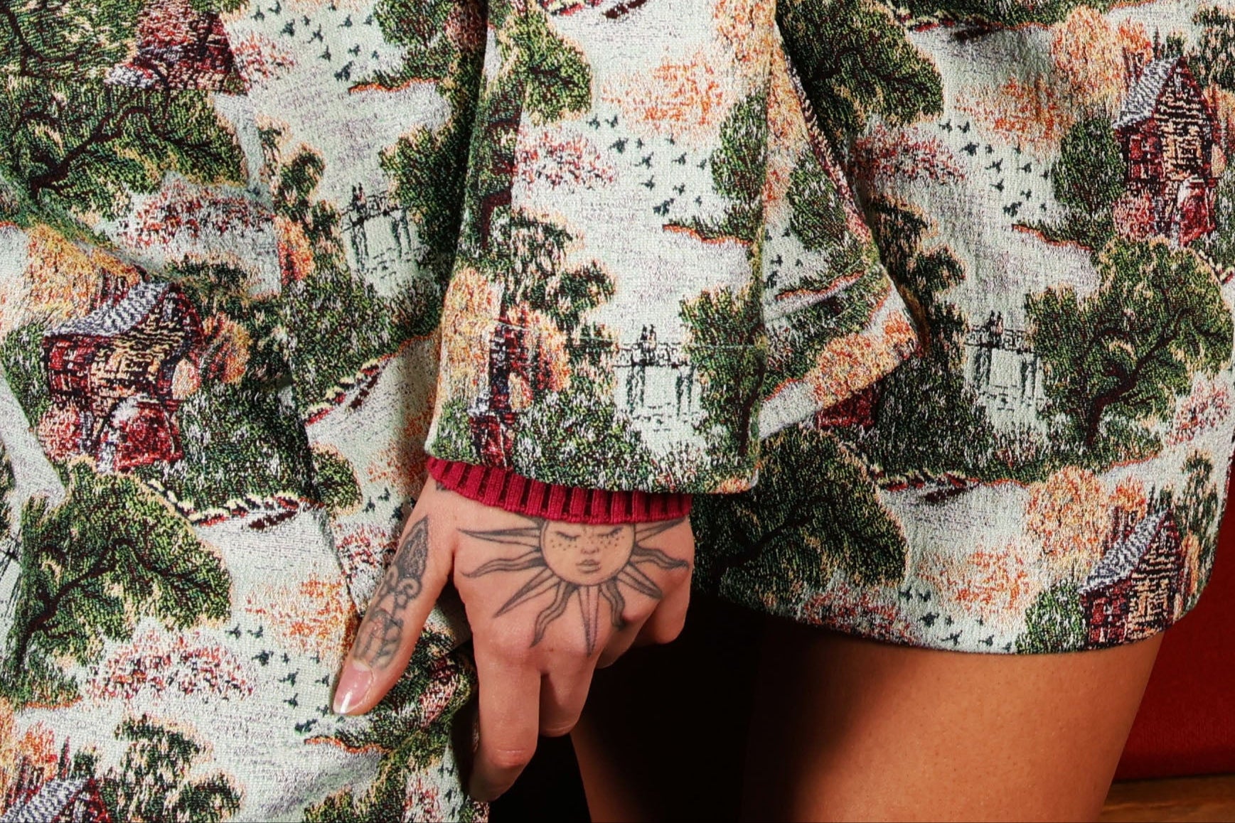 Is echt een prachtige set. Het contrast van de print op het jasje met de streepjes is zoooo mooi!