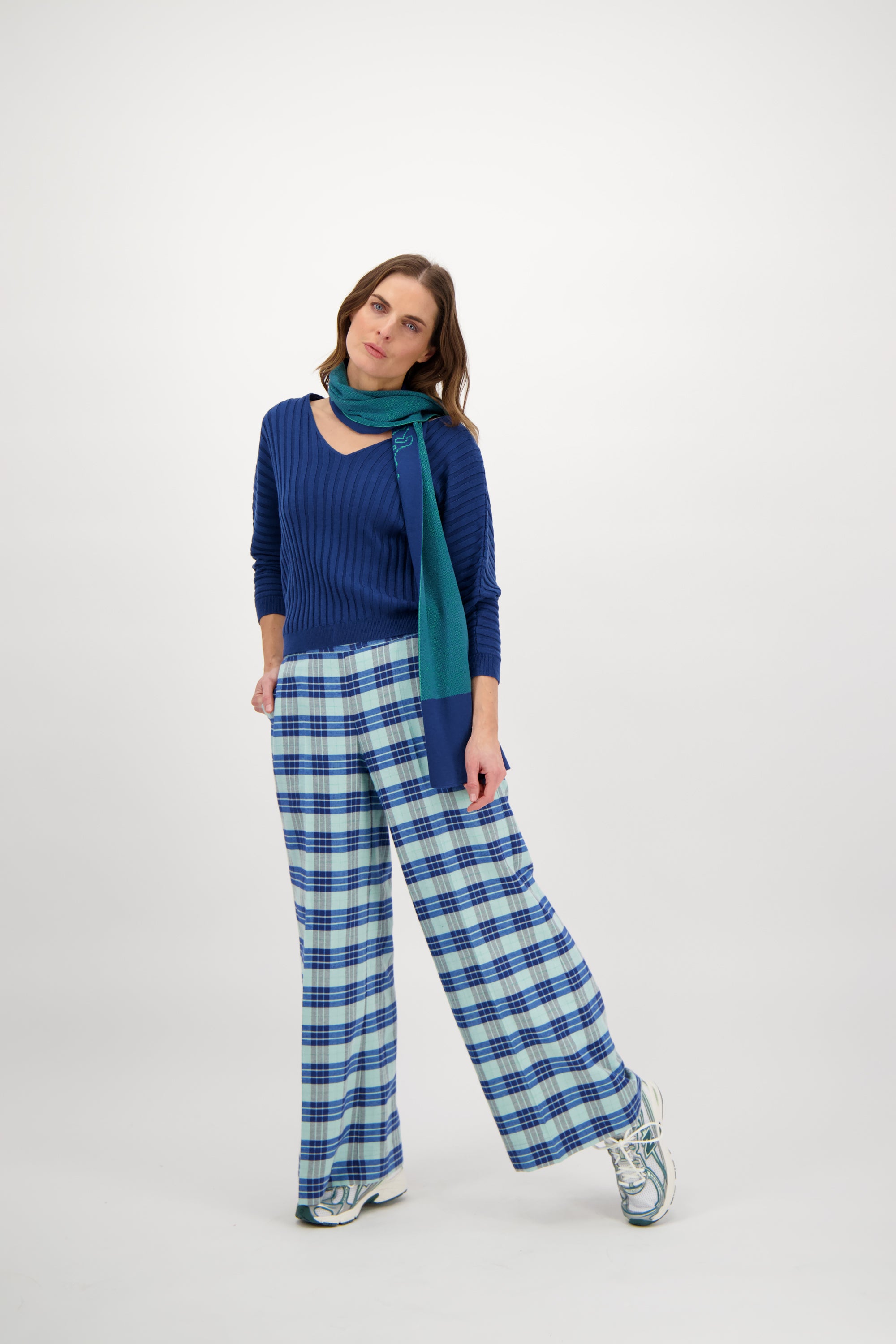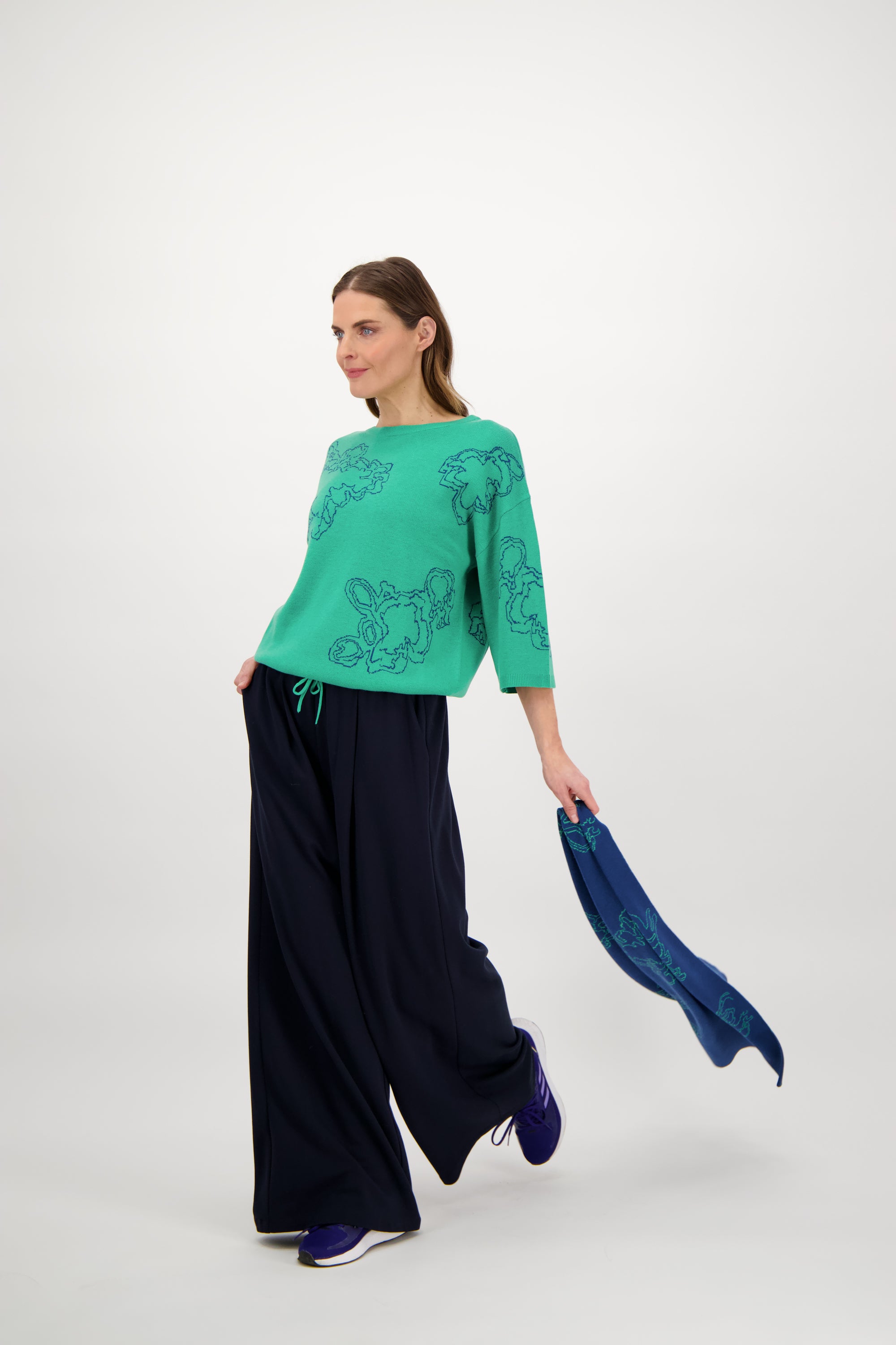 NOELLE SCARF // DUNNERE SJAAL IN BLAUW-GROEN MET ORGANISCH PATROON