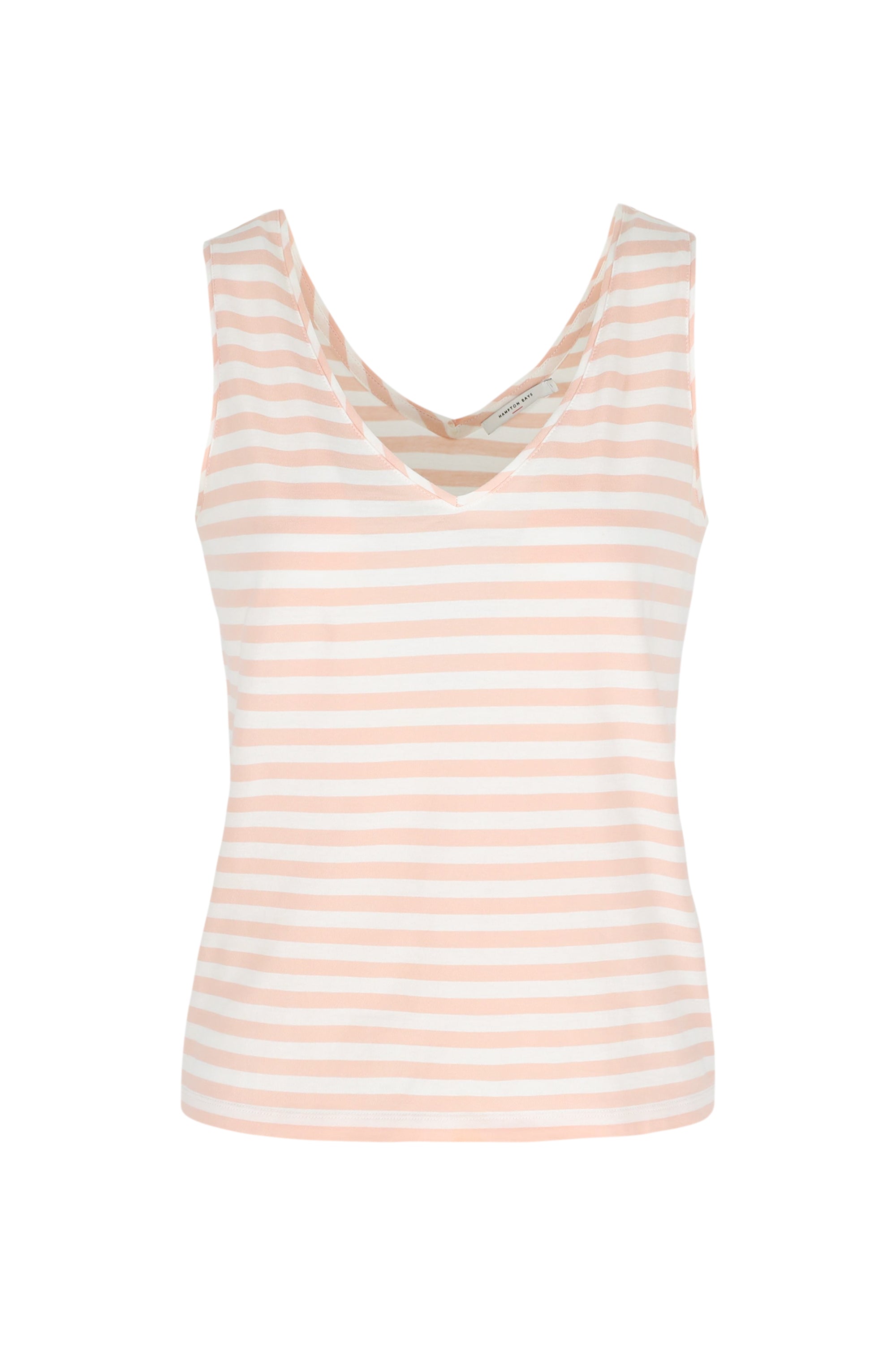 Klassiek ontmoet modern in deze gestreepte versie van de Gran Canaria top. Uitgevoerd in een zachte jersey met fijne horizontale strepen in English Rose, is dit de ultieme summer staple voor je dagelijkse rotatie. De diepe V-hals aan de voor- en achterkant geeft de top een vrouwelijke en luchtige touch, terwijl de aansluitende pasvorm ideaal is om ergens in te stoppen of als basis voor laagjes te gebruiken. Een moeiteloos item dat die felbegeerde french-girl-chic vibe naar je garderobe brengt.