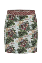 Stilvoll kombinieren! Dieser kurze Rock mit verspieltem Print in Mintgrün und Burgunderrot ist verspielt und schick. Der burgunderfarbene elastische Bund sorgt für Komfort, während der auffällige Print Persönlichkeit verleiht. Tragen Sie ihn als Co-ord (mit unserem passenden Blazer) oder einzeln für einen farbenfrohen Touch.