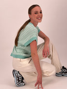 Add character to your everyday look with the Toulouse knit. This relaxed-fit tank top immediately stands out with its beautiful combination of a delicate openwork knit and a striped pattern in the deep, elegant "Yucca" shade with off-white. The small holes in the knit not only create a romantic texture but also make the knit wonderfully airy for warmer days. With its short raglan sleeves and relaxed fit, the Toulouse is the perfect blend of comfort and chic.