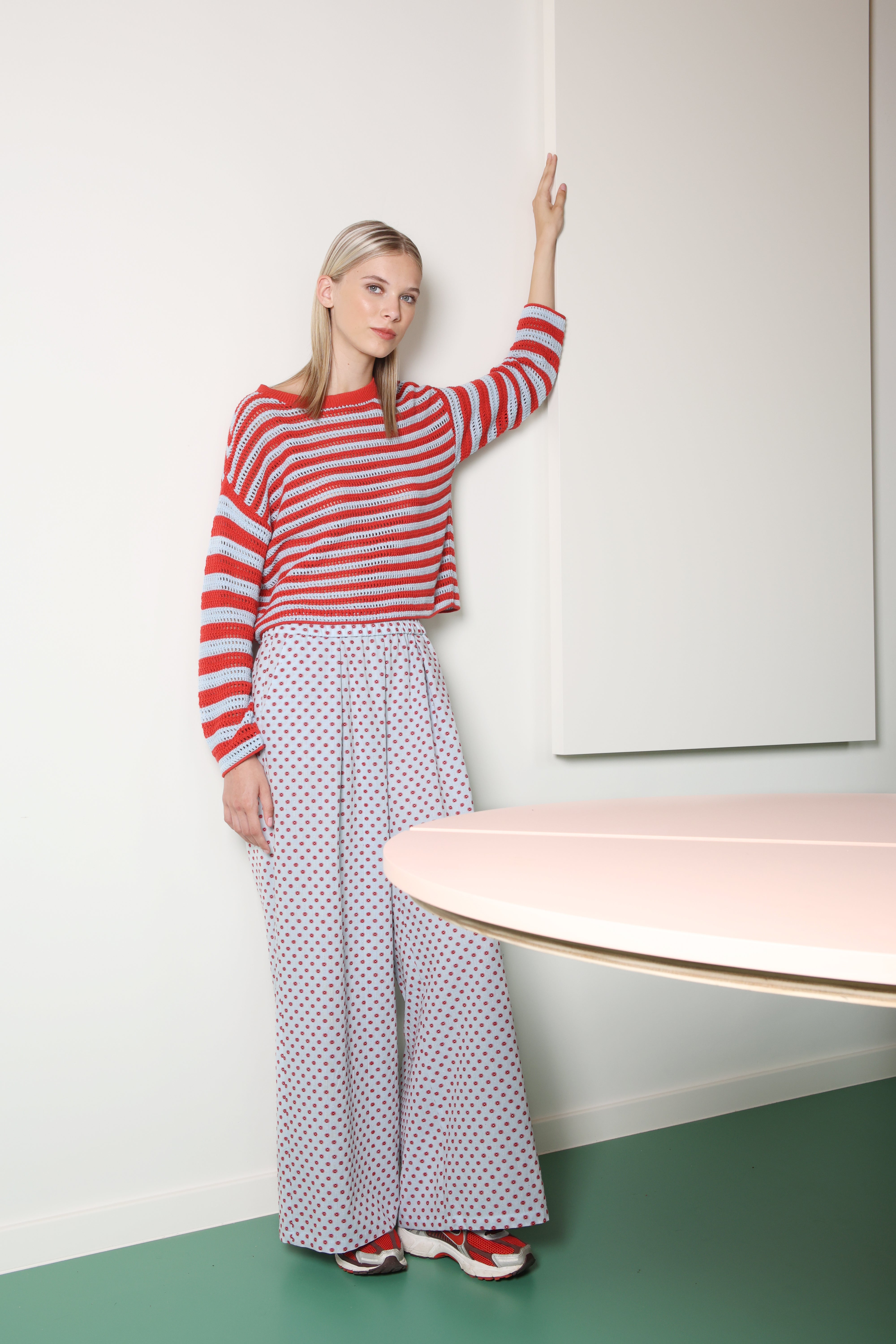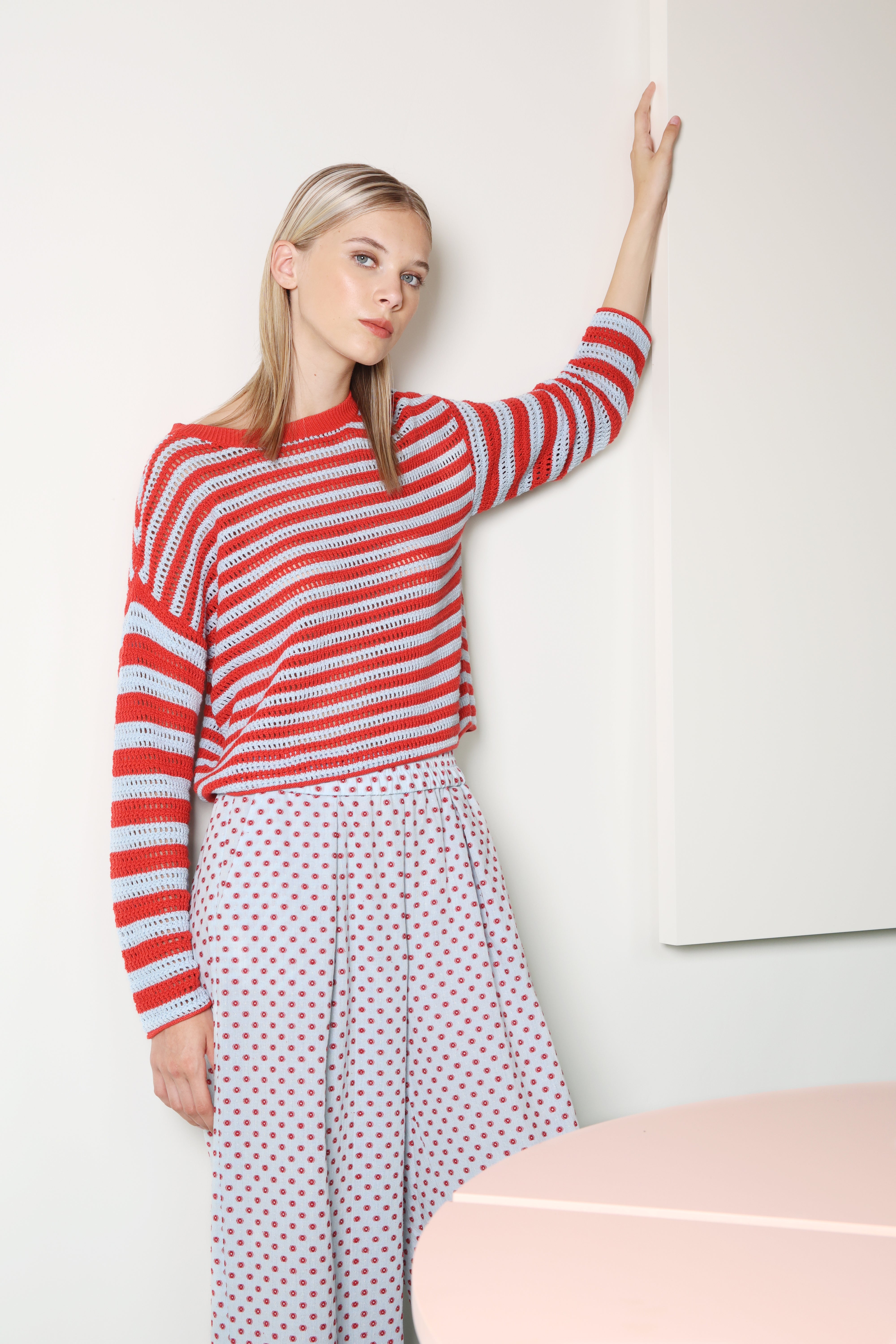 Styling tip: Wear the Verona pants with the Veracruz blouse for a spectacular faux jumpsuit effect, or combine them with this striped knit for the ultimate mix.