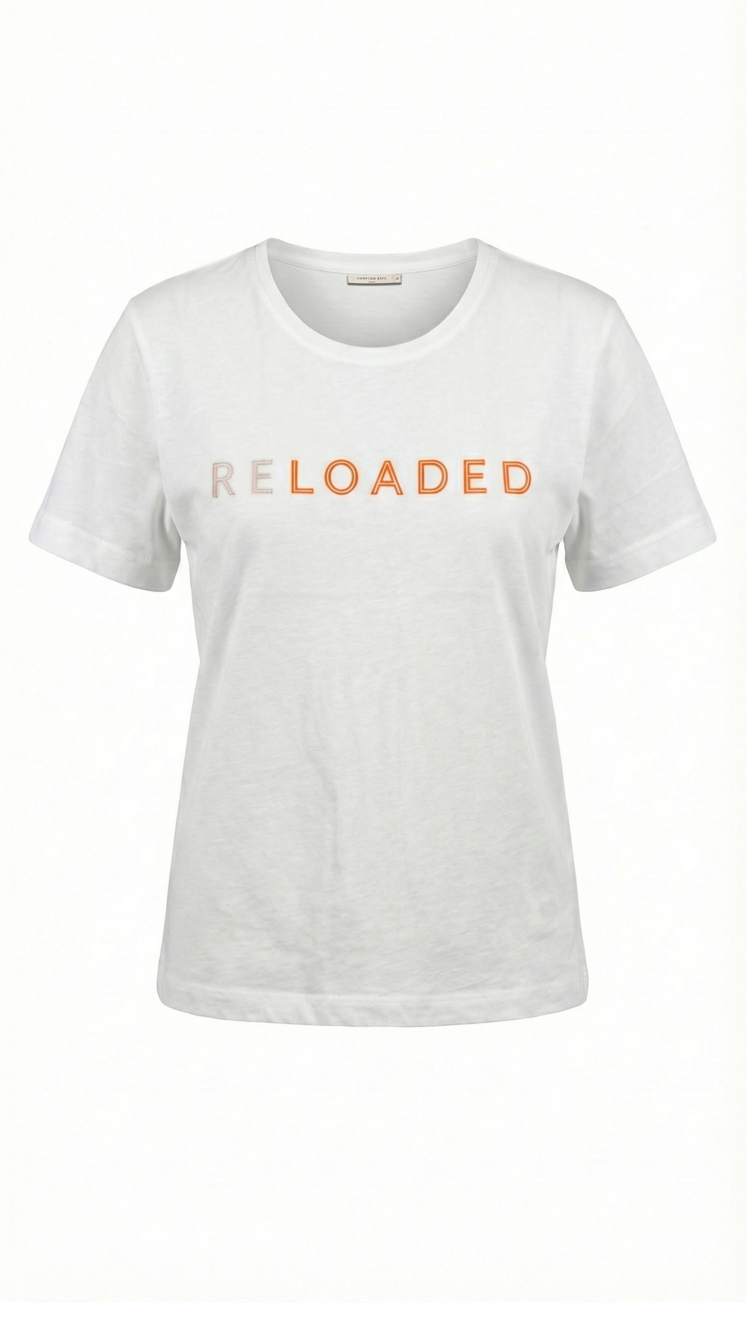 The ultimate upgrade for your daily uniform . The Bologna T-shirt isn't just a white basic; the subtle texture in the jersey gives it that luxurious, high-end feel we love. The embroidered "RELOADED" quote on the chest instantly adds a sporty edge to your look. Thanks to the relaxed fit and classic crew neck, it's the perfect match for your favorite denim or those statement Alicante pants. Ready to hit the streets?