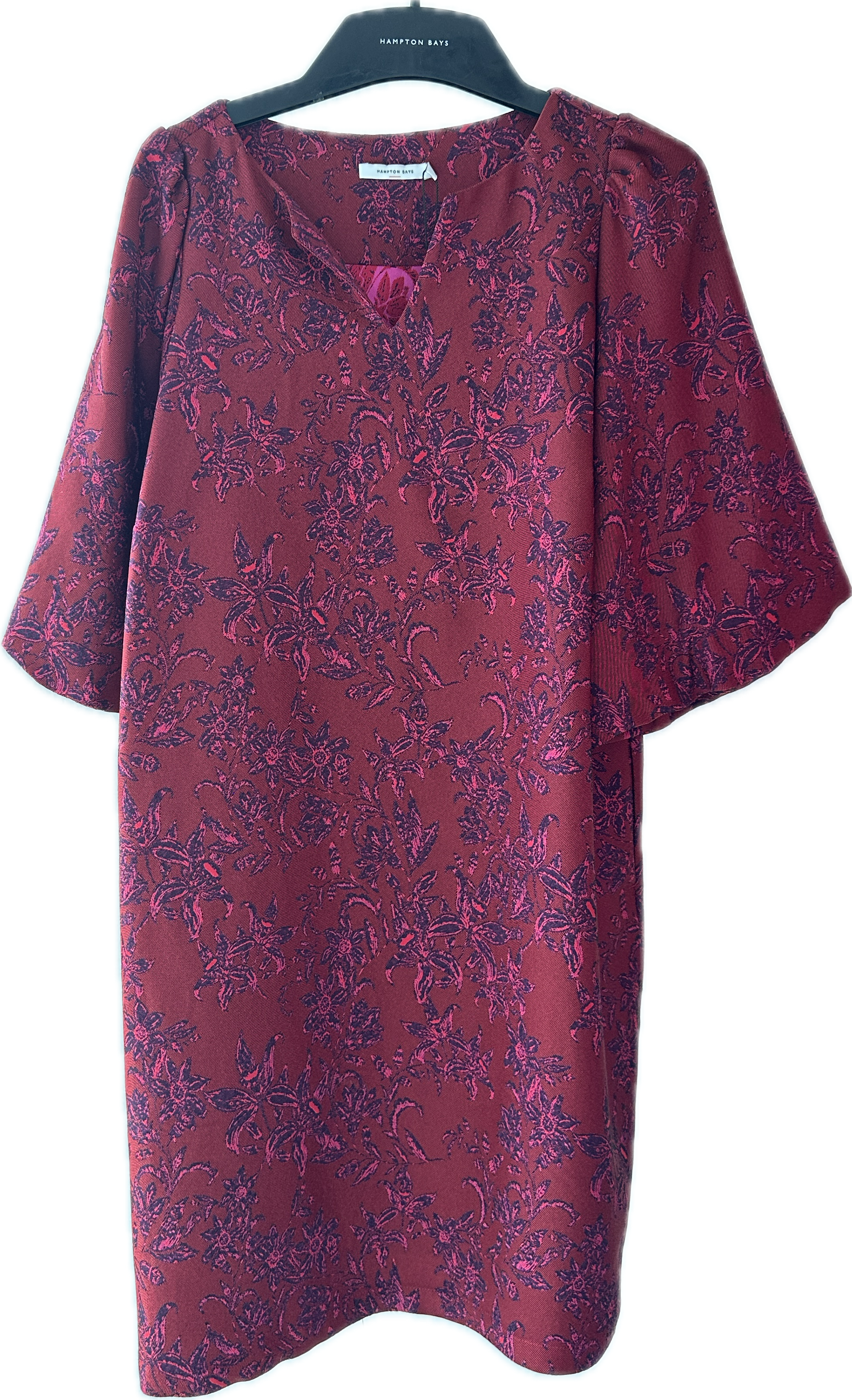 Bold & bright! This short dress with an oriental print in vibrant fuchsia hues is an instant mood booster. The slight V-neck and puff sleeves with elastic add a feminine touch, while the bright colors make you shine. Wear it with sneakers for a playful vibe or dress it up with heels.