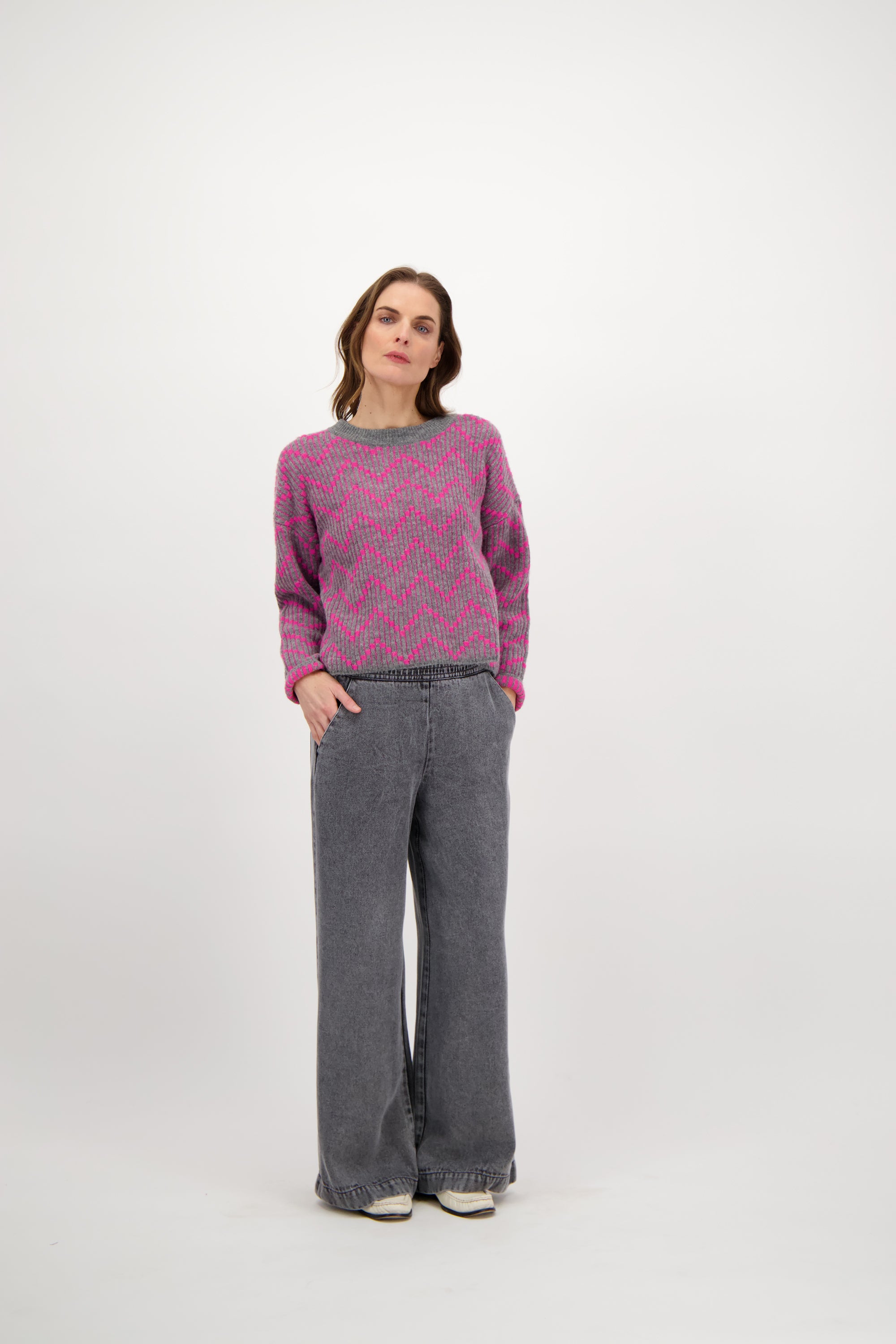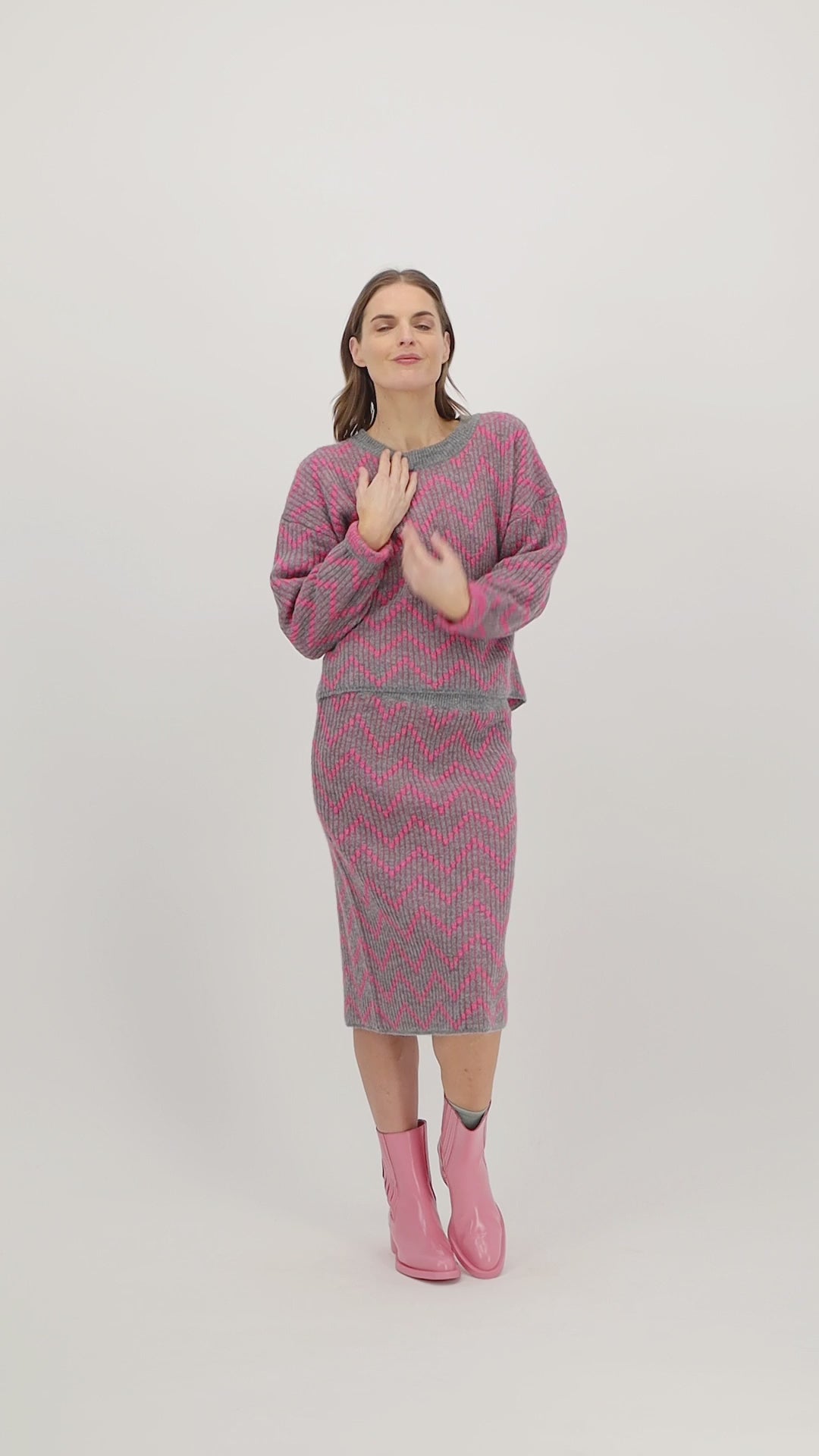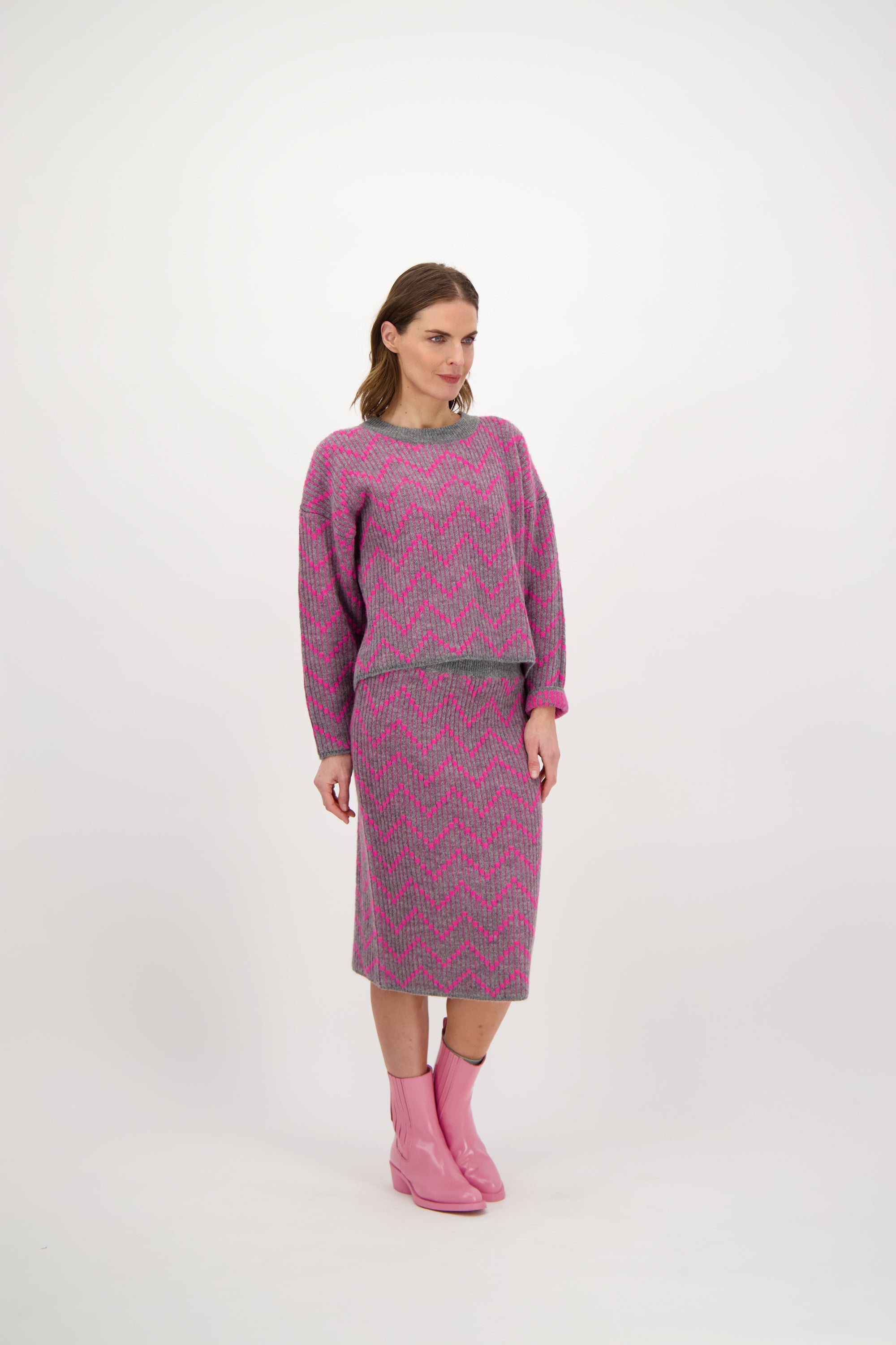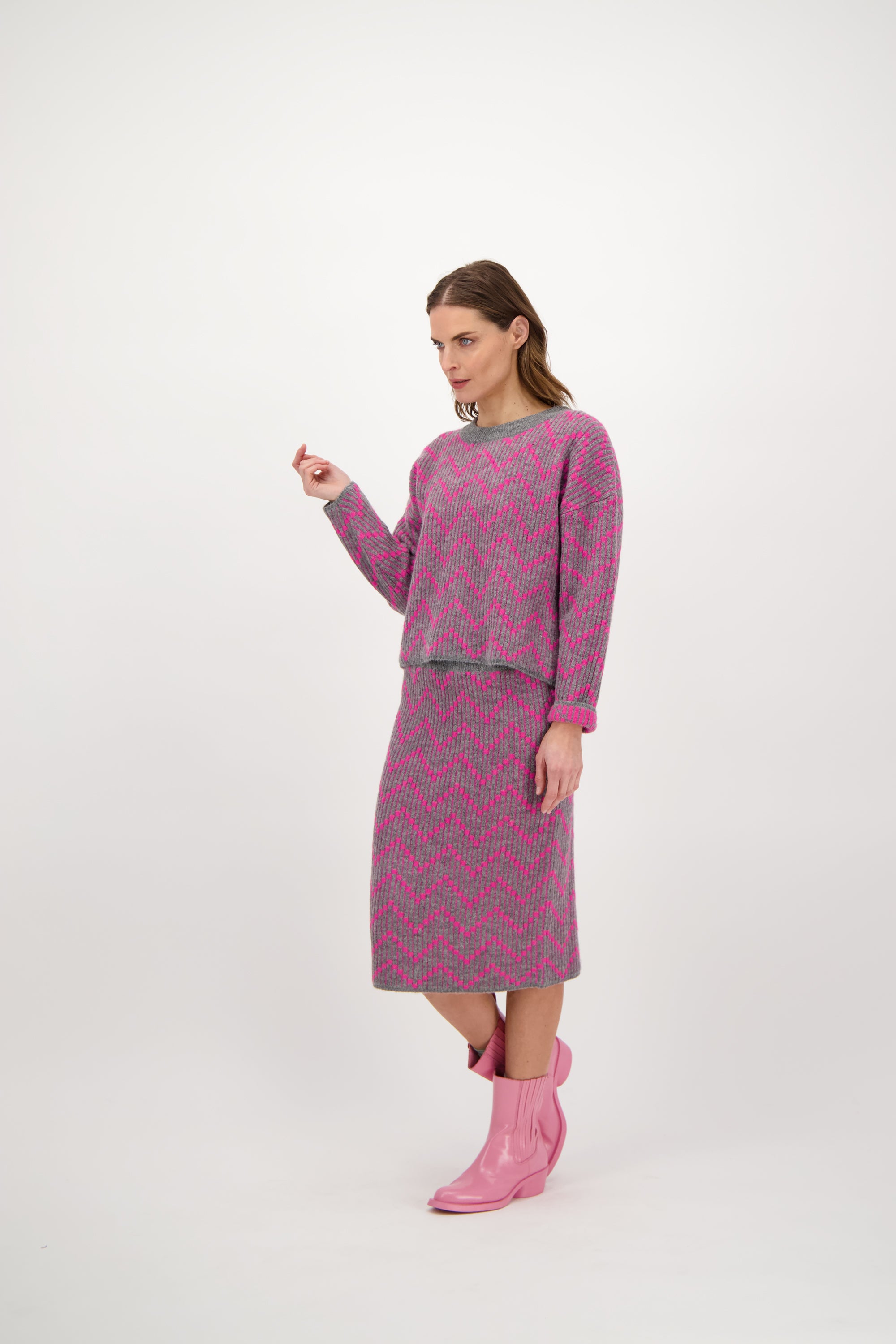 Envie d'une touche de couleur avec une touche de fraîcheur ? Ce pull fuchsia à motif zigzag gris apportera de l'énergie à votre garde-robe hivernale. La maille douce est agréable au toucher, tandis que la coupe droite et les poignets côtelés garantissent une tenue décontractée et facile à porter. Associez-le à un jean gris pour un look décontracté ou optez pour la couleur avec la jupe assortie.