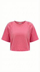 Onze Jaipur T-shirt tilt de basic tee naar een hoger niveau met zijn leuke pofmouwen en boxy fit. Met zijn elegante ronde hals en volumineuze half-lange mouwen is dit t-shirt de perfecte balans tussen klassiek en sportief. Een tijdloos stuk in de kleur Camelia Rose dat past bij elke broek en rok. Beschikbaar in 2 kleuren; bordeaux en roze.