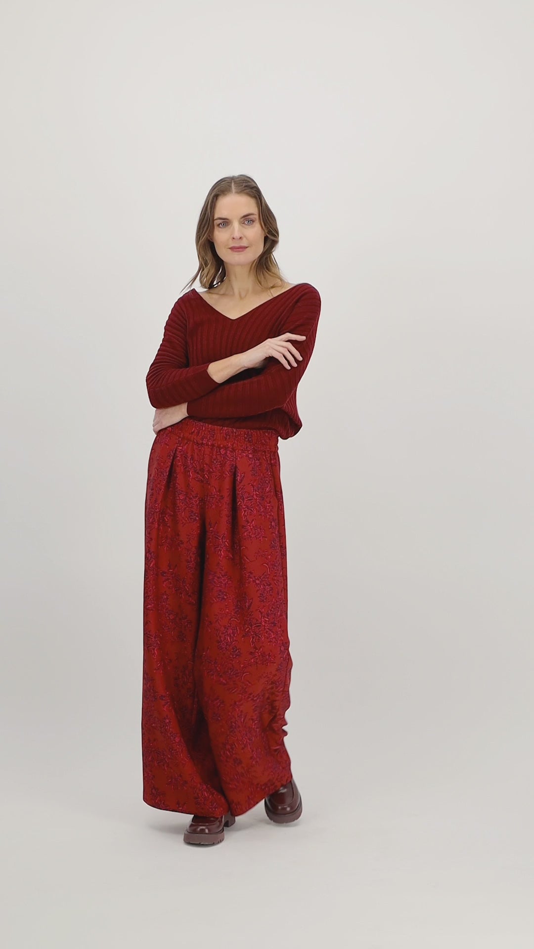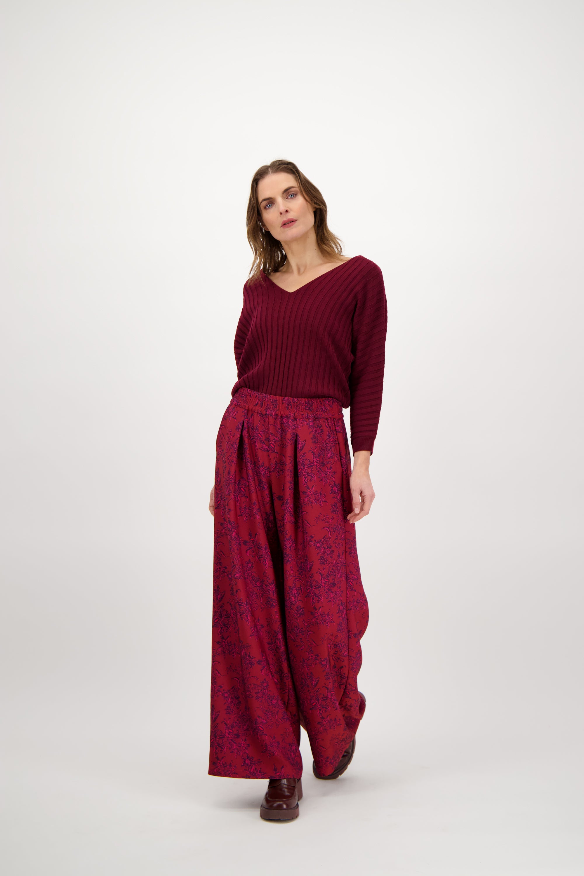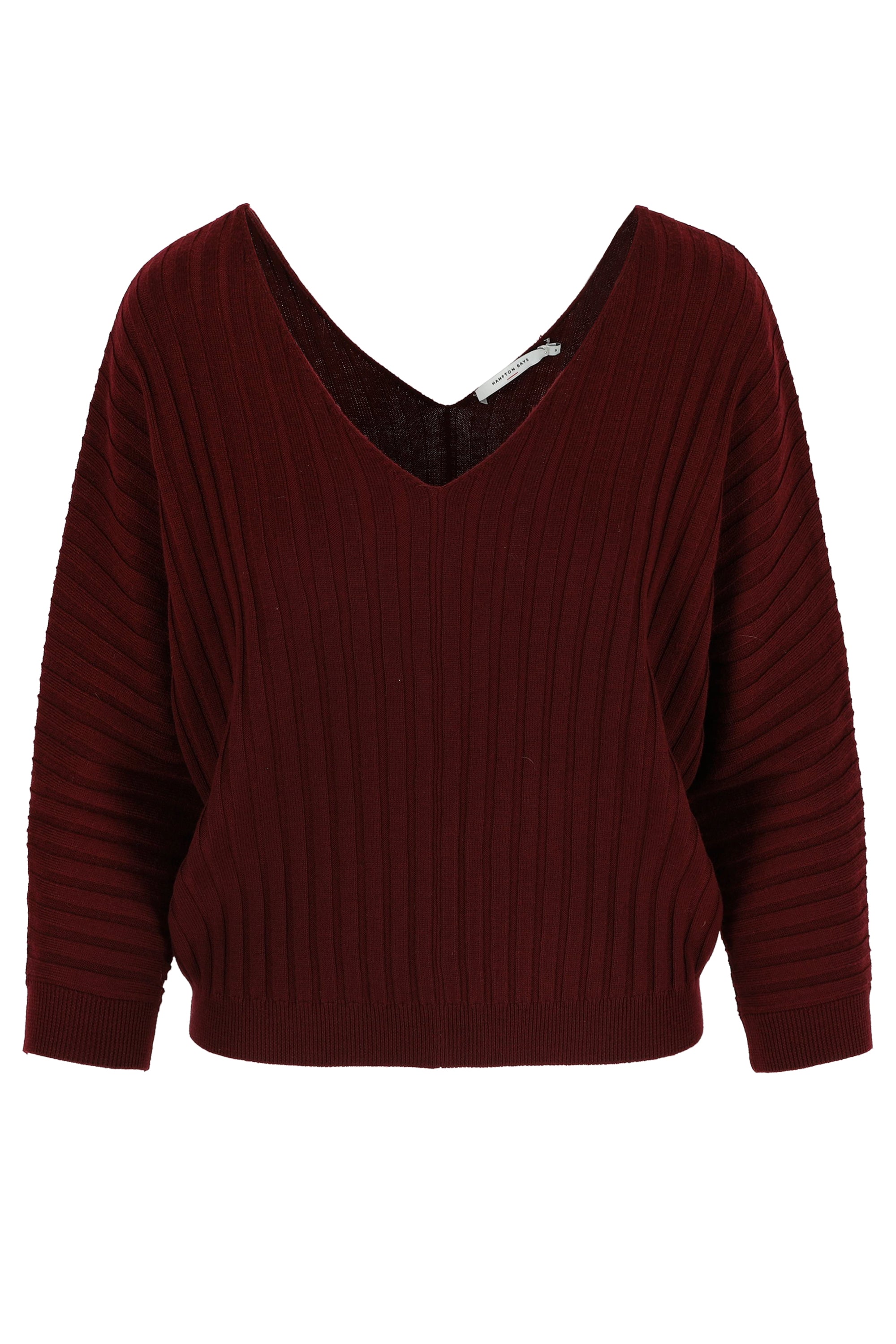 WANDEL KNIT // BORDEAUXBRUIN RIBTRUITJE MET V-HALS VOOR EN ACHTER